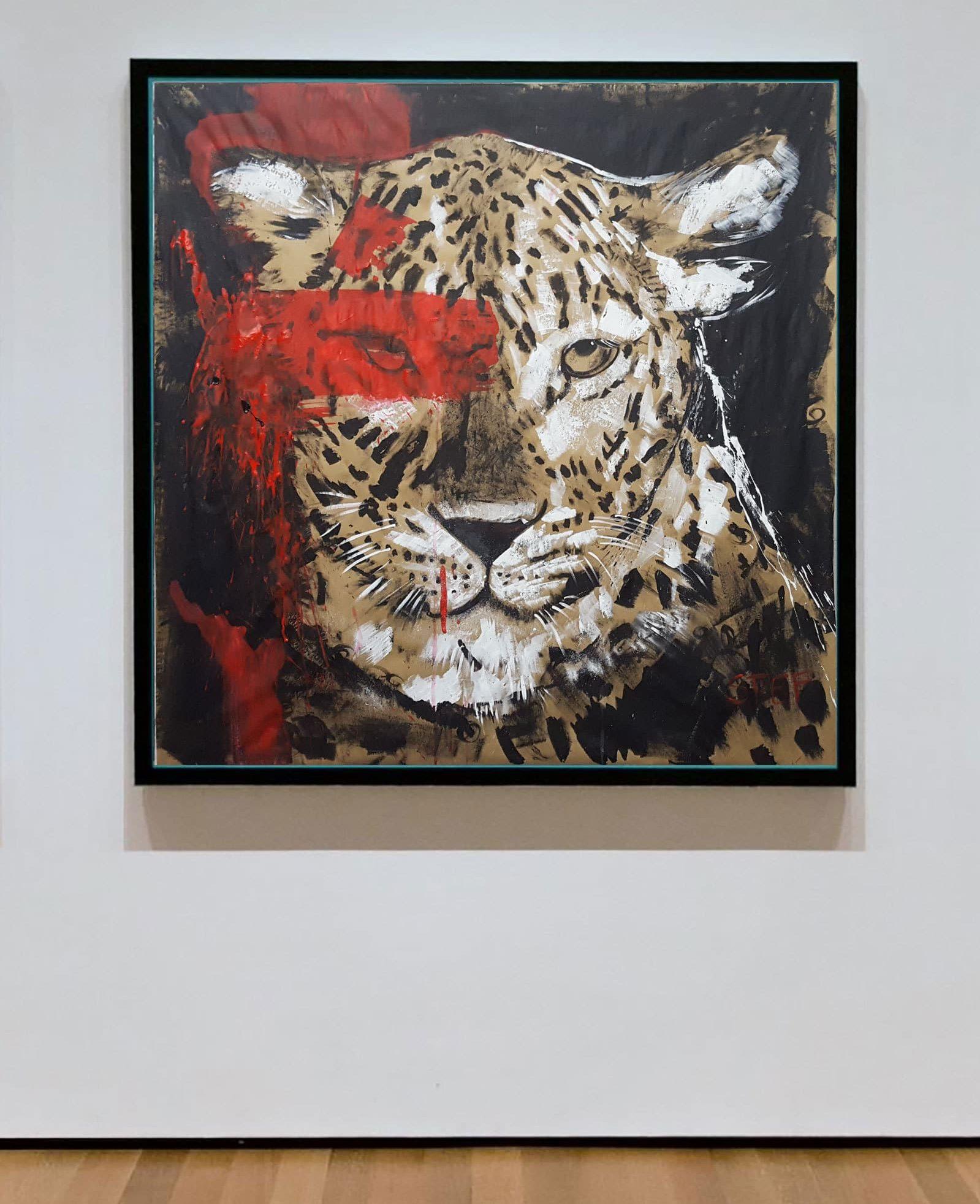 Am 2.3.2018 war der Internationale Tag des Artenschutzes und es war das diesjährige Anliegen, auf die besondere Schutzbedürftigkeit von Großkatzen aufmerksam zu machen. Ich habe mich inspirieren lassen und eine großformatige Serie auf Papier gestartet. Expressiv sind die Charakterköpfe von Löwe und Leopard in den Tönen Schwarz, Weiß und Signalrot gearbeitet.