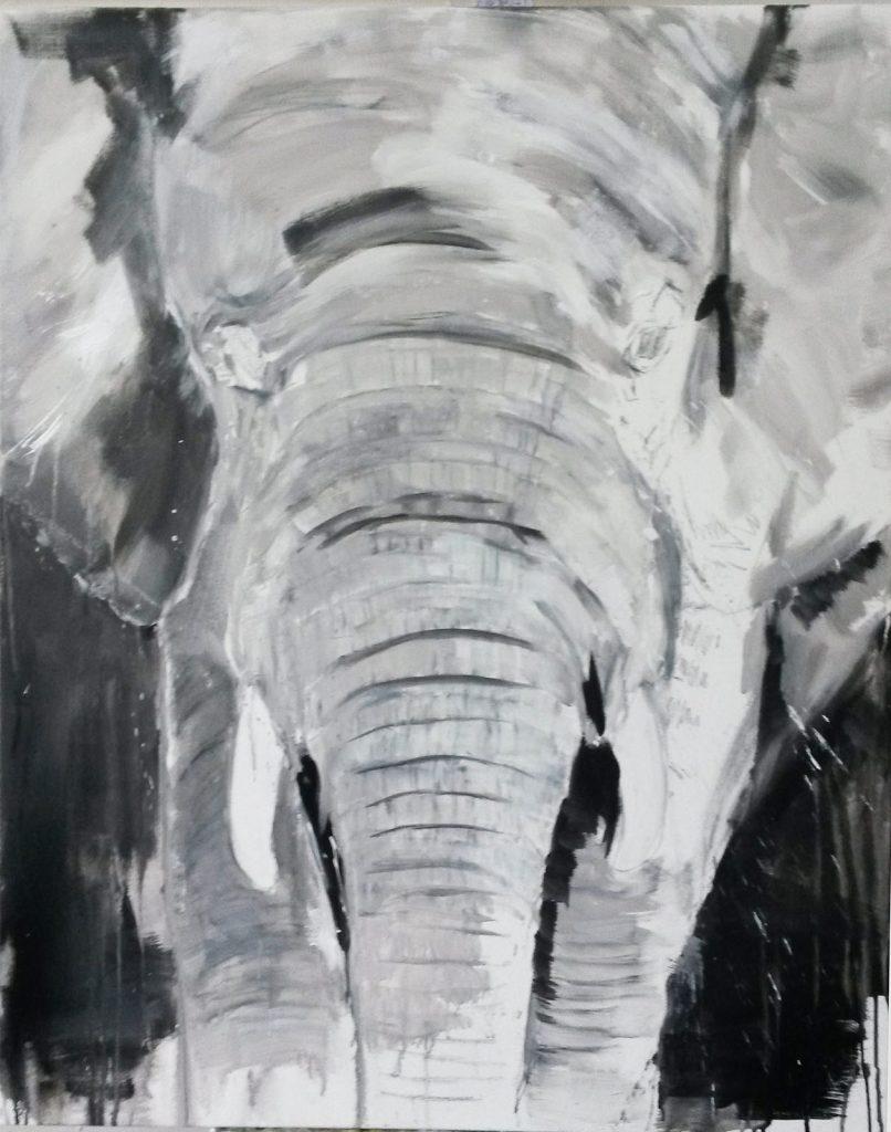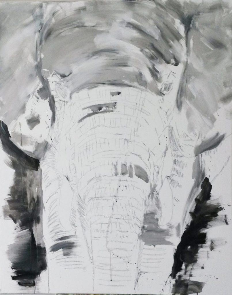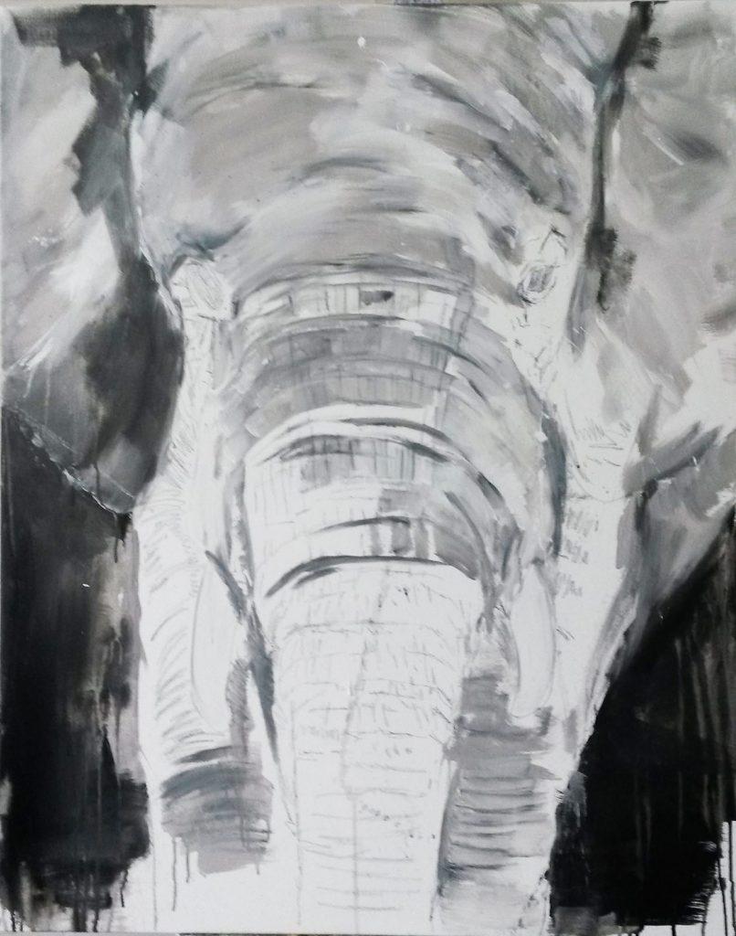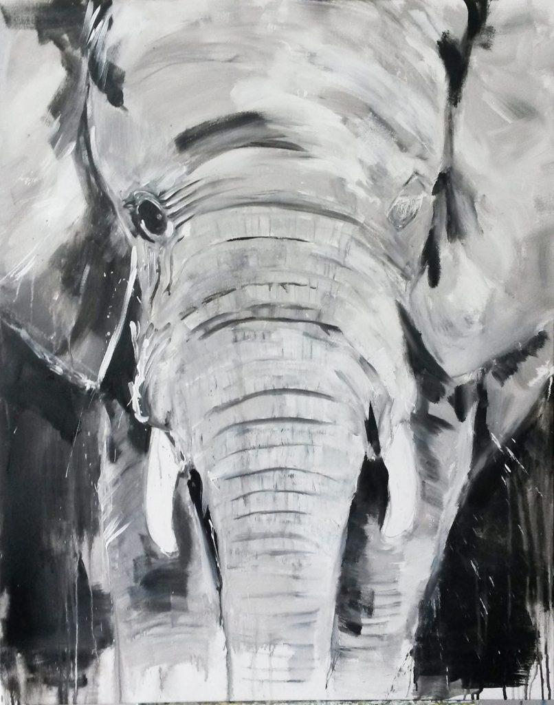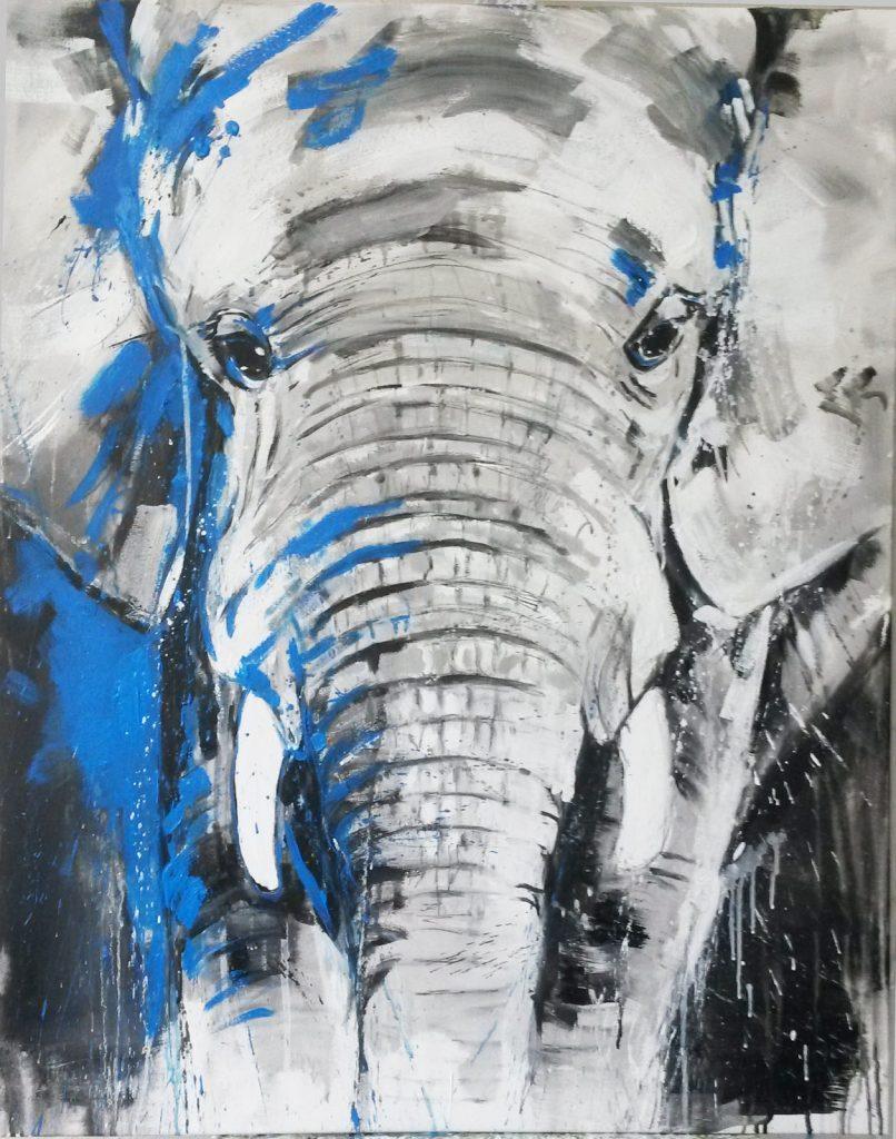 Diese Woche ist ein Dickhäuter entstanden: Das Acrylbild „Elefant” ist auf Leinwand in Acryl gemalt.