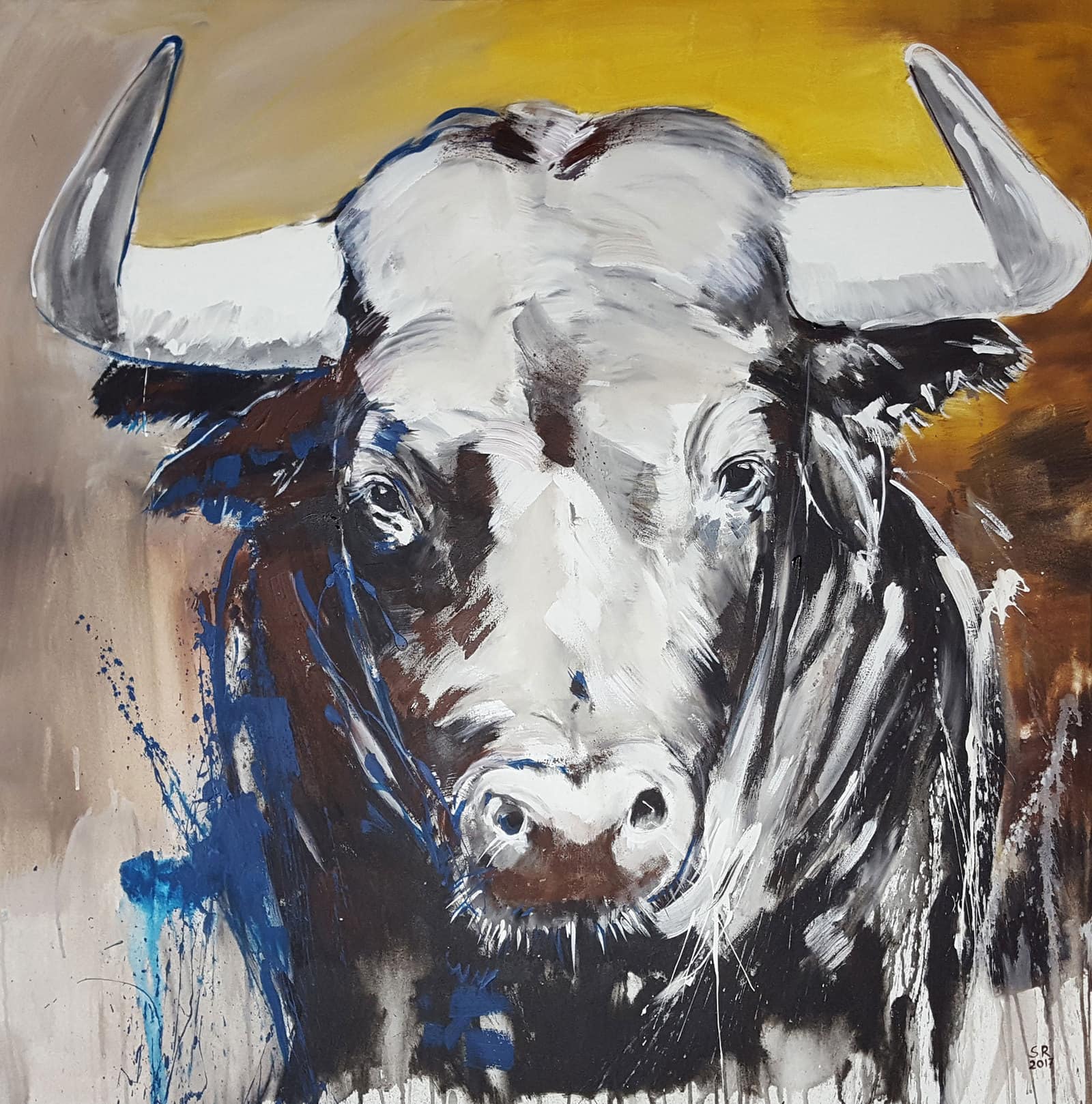 Dieser Charakterkopf ist gerade in meinem Atelier entstanden: TAURUS ist ein expressives Portrait von einem Stier auf 100 x 100 cm Leinwand. Explosives Farbspiel in Erdtönen und Petrol. Der Stier dominiert […]
