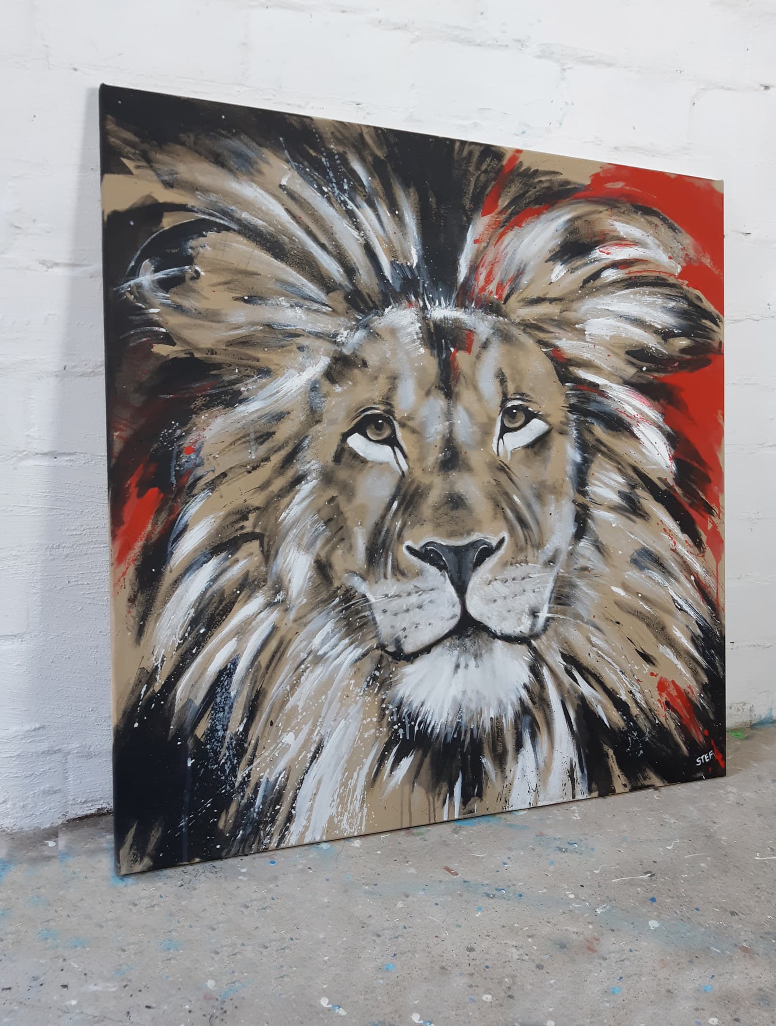 Dieses Wandbild eines Löwen entstand in der Serie “ONE OF THE BIG FIVE”.