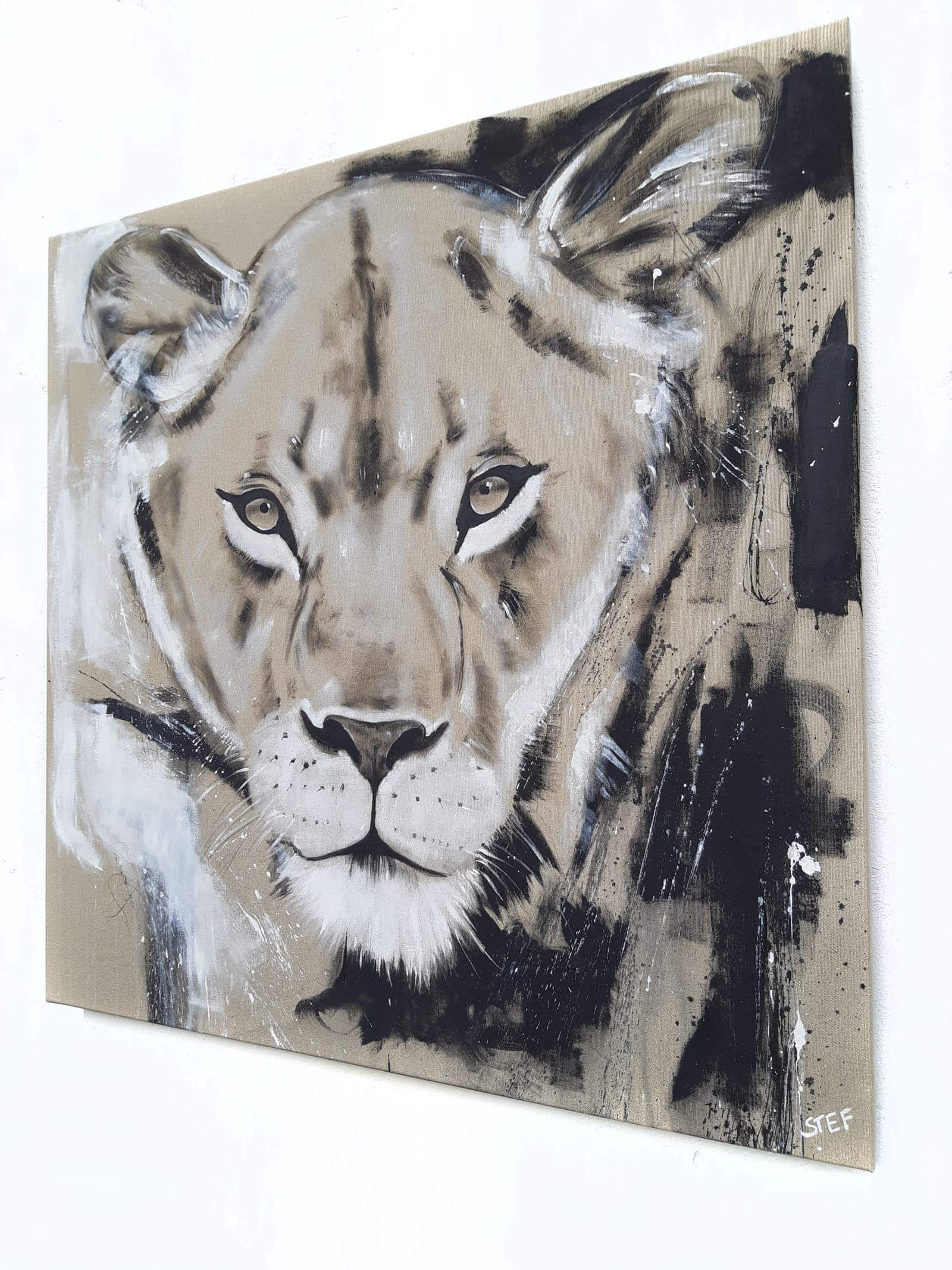 Dieses Gemälde einer Löwin entstand in der Serie “ONE OF THE BIG FIVE”.