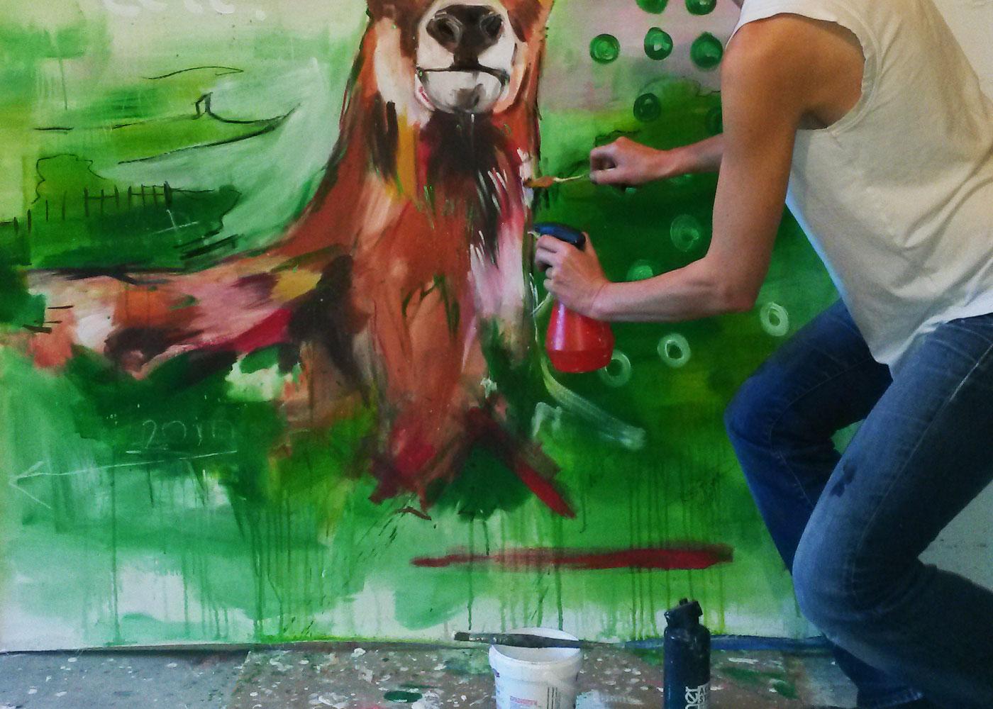 Auch in Ihren figurativen Serien arbeitet sie expressiv und impulsiv. Hier werden oft sozialkritische Themen angesprochen wie z.B. in der Serie „Kühe codiert”, die kritisiert, wie Tiere in unserer Konsumgesellschaft als Ware behandelt werden. Oder in den aktuellen Serien „One of the big five”, „Auf der Roten Liste“ und „Hominidea“, die die Großwildjagd und Wilderei zum Thema hat, die viele Arten vom Aussterben bedroht.